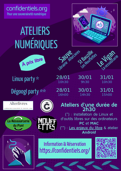 Il est possible d’installer en dual boot (c’est-à-dire installation de linux sur l’ordi sans désinstallation de l’OS Windows ou Mac), un processus plus laborieux pouvant nécessiter 2 ateliers,selon la marque et le modèle de votre ordinateur.